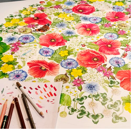 I was commissioned by Mark & Waldorf to create a Danish wildflowers illustration for a 1000-piece puzzle measuring 60x60 cm.
