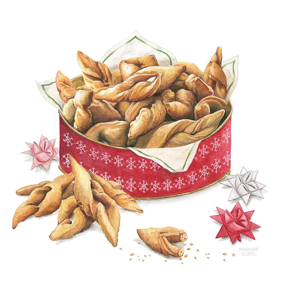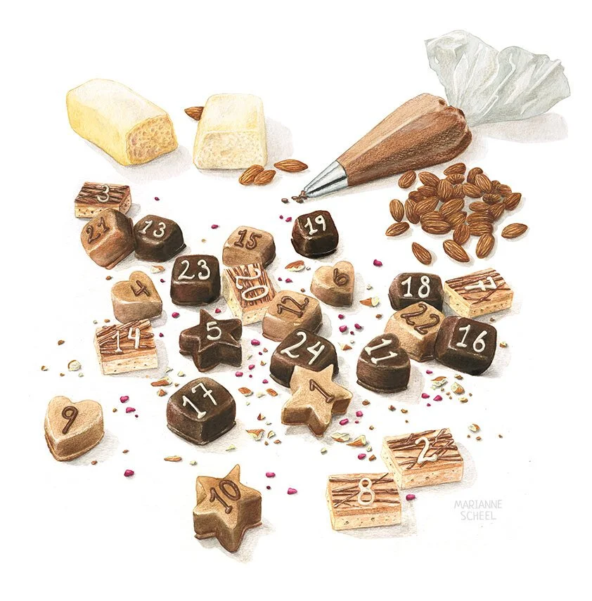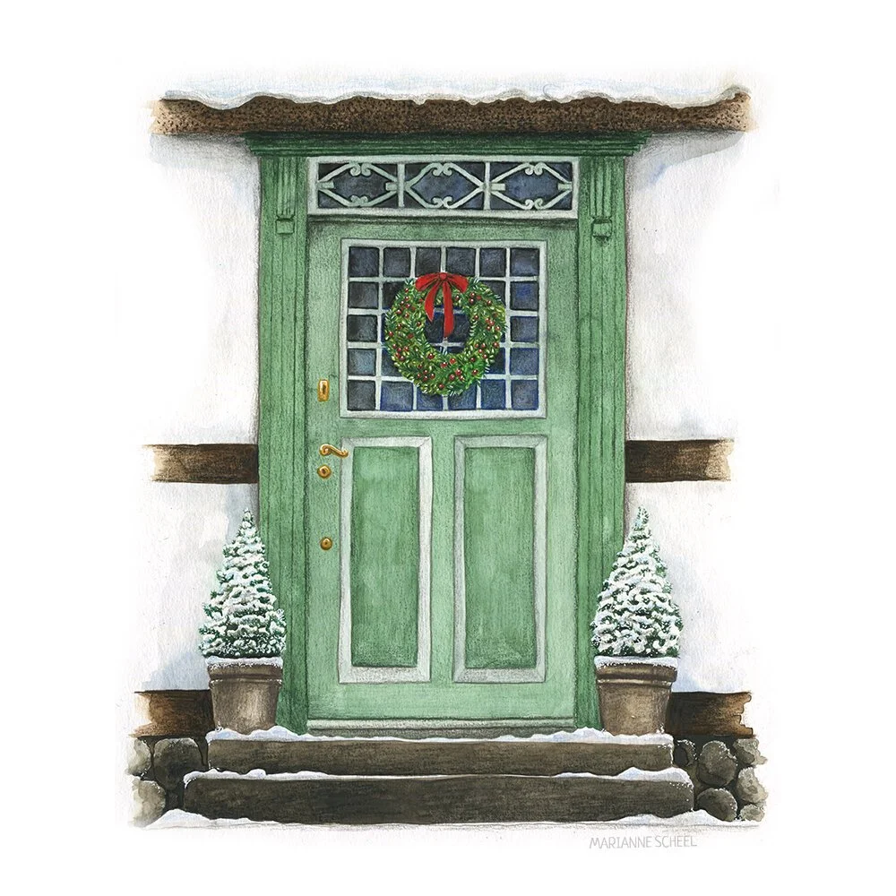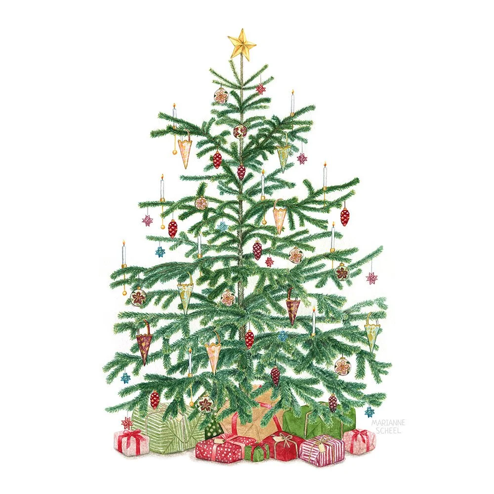 I was commissioned to create eight Christmas illustrations for a new greeting cards set. These illustrations were intended for use on a Christmas postcard set, which included a folder/packaging, as well as home decor products. The goal was to create realistic illustrations that represented Danish Christmas traditions and matched the 2018 Christmas collection. The illustrations were produced using watercolor and color pencils.